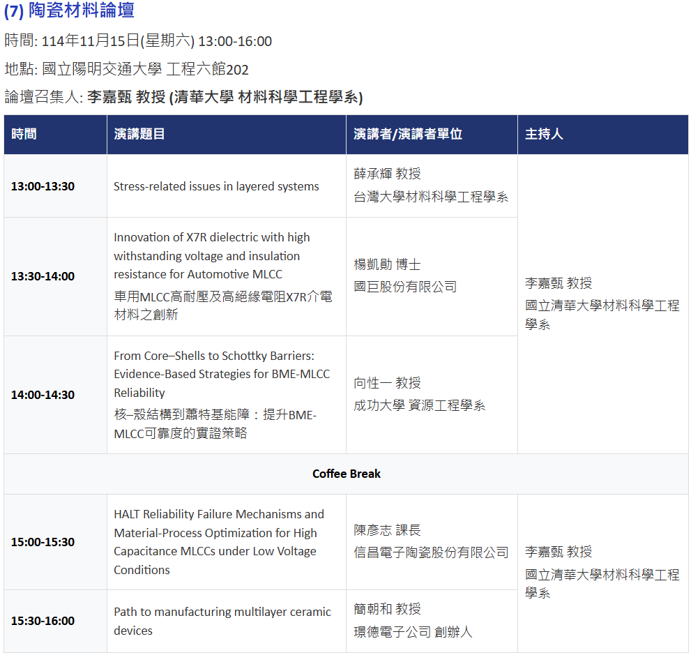 【訊息轉知】國立清華大學材料系「2025 材料年會陶瓷論壇」,歡迎業界先進參與與交流。